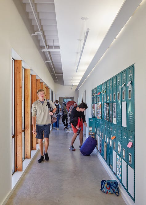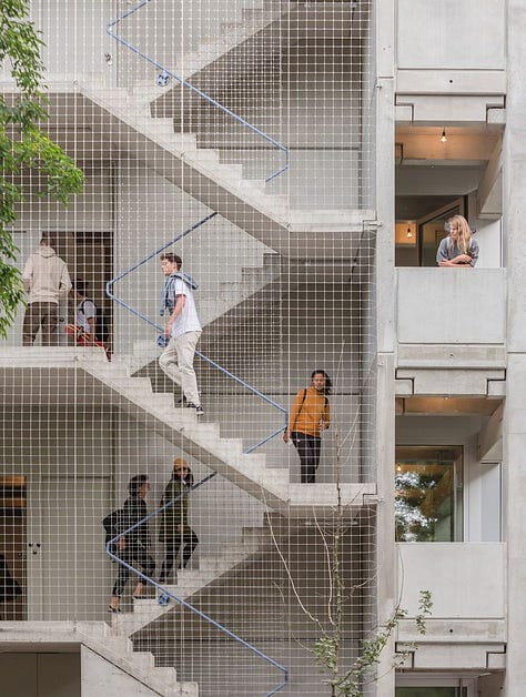 Apart from the hallway, here are some other examples. Notably, these spaces have the unique quality of purposelessness beyond transition, a presiding sense of waiting. For the most part, nobody is hanging out on a train platform unless they’re waiting for a train. Nobody is hanging out on an escalator unless they’re waiting to reach the next floor, to end up somewhere other than where they started. To pull us out of uncanny valley for a moment, here are some equally liminal, yet populated, iterations of these spaces (left to right from FAR, Murray Legge Architecture and Architecture Research Office):
